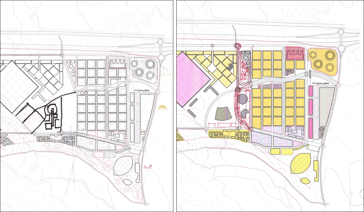 El proyecto se implantaría inicialmente en un ámbito extenso, de forma sensiblemente trapezoidal, que se extendía a lo largo de cerca de 3 km junto a una vía rápida, con una anchura media de 1 km., y una superficie total superior a las 300 Ha.
