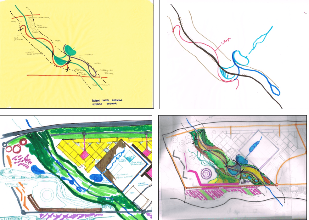 La Ciudad Parque: reservas y dotaciones de zonas verdes que convierten a la ciudad proyectada en un verdadero modelo de ciudad ecológica y medioambientalmente sostenible, con ratios muy por encima de los requerimientos legales y normativos. Estos espacios verdes tenían 3 ámbitos de desarrollo fundamentales a base del diseño de tipologías de parques lineales, que protegían el ámbito en su periferia y posibilitaban un pulmón interior que articulase la ciudad proyectada.