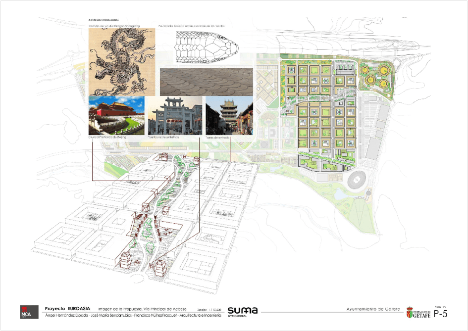 Se trataba de un proyecto emblemático y singular para la implantación de una mini-urbe oriental, a la que provisionalmente se le denominó EuroAsia, donde “Los visitantes que acudan…conocerán de forma directa y lúdica, tanto el pasado como el presente y el futuro de su cultura (oriental) en todas sus perspectivas y manifestaciones”. Ello implicaría además, una “profunda dinamización de la economía y la notoriedad de este pujante municipio de la periferia madrileña”.