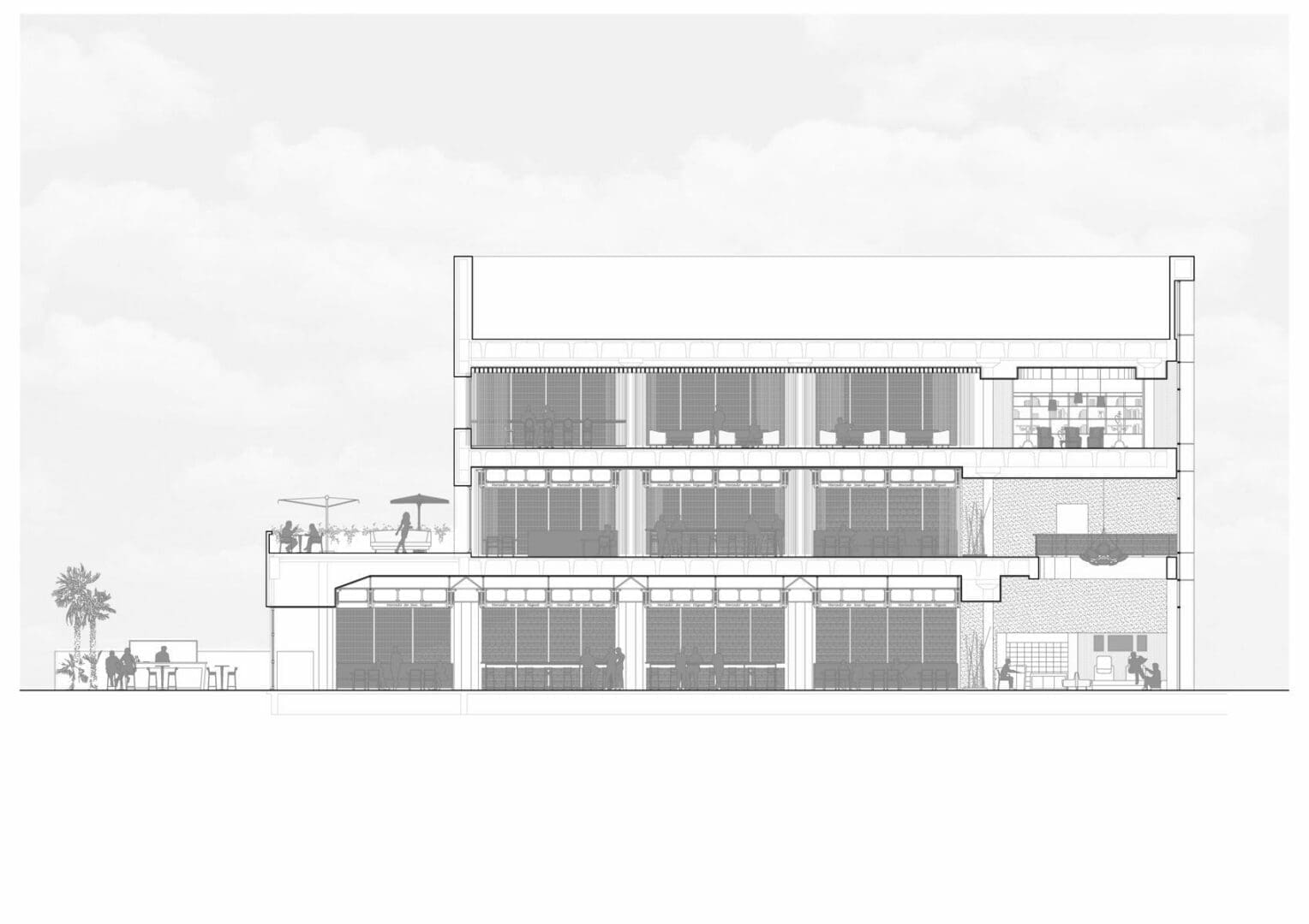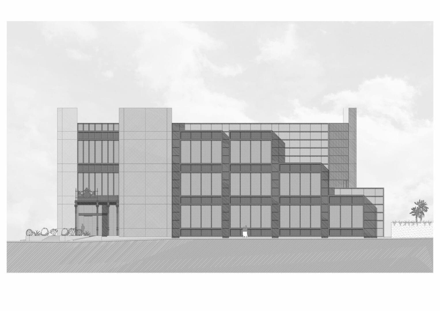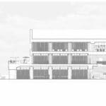 Los lugares de servicio y vestuario de personal deberán ubicarse en cubierta del edificio, donde hay espacio y altura suficiente para albergarlos próximos a las máquinas de instalaciones. La altura de las fachadas del edificio sobrepasando en gran medida la losa de cubierta hará que estos espacios de servicio y de instalaciones no sean visible desde la calle.