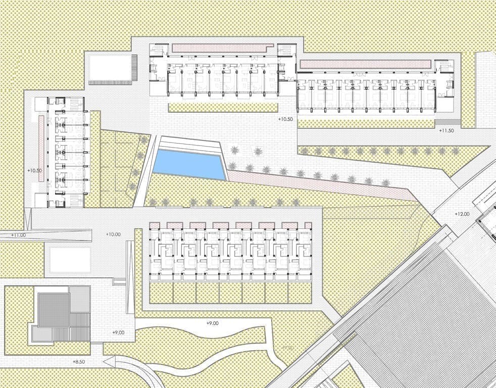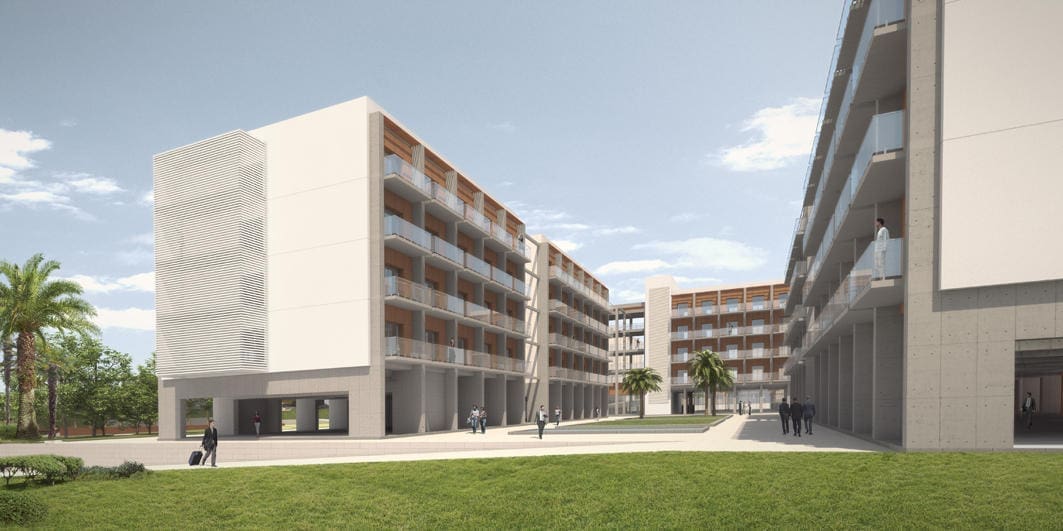 El proyecto contempla el desarrollo de un complejo académico con capacidad inicial para 800 alumnos ampliables, con residencias para 400 alumnos, más profesores, responsables y empleados (hasta una capacidad para unos 500 alojamientos), espacios para eventos, zonas de servicios, además de extensas áreas deportivas, jardines, zonas de ocio y una zona específica de alojamiento para visitantes. Programa que se desarrolla en más de 60.000 m2 de construcción, enclavados en una parcela de más de 17 ha.