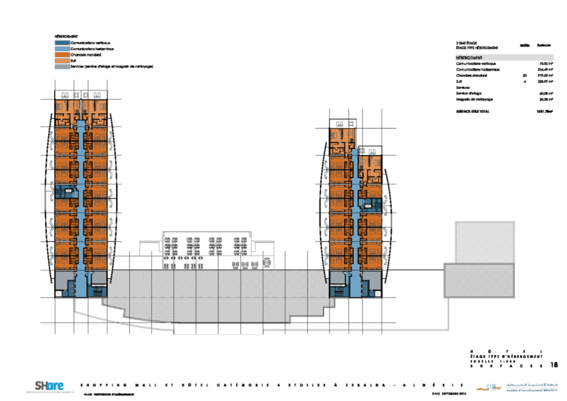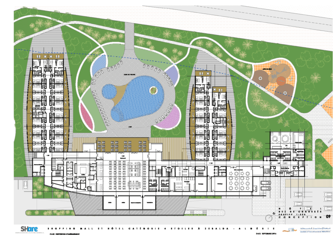 La adjudicación del proyecto proviene de la convocatoria por la SIH de un concurso internacional para la realización de “Un Centro de Formación en Hotelería y Restauración en Argel”; concurso convocado en noviembre de 2011 y adjudicado en enero de 2012. El proyecto de arquitectura fue desarrollado en su totalidad por SHARE entre enero y agosto de 2012, iniciándose las obras de construcción en julio de 2012, y completándose las mismas al final del verano de 2014, comenzando las actividades académicas en noviembre de 2014.