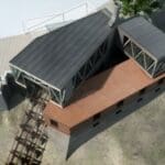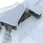 - La protección de la maquinaria de las inclemencias meteorológicas, mediante la disposición de cierres de vidrio transparente hacia el plano inclinado y las estructuras de soporte de rieles.